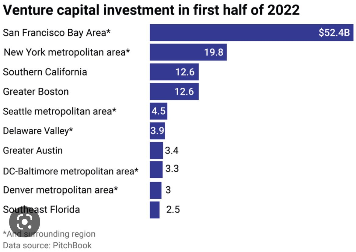 Even ecosystem #2 is less than half the size of SF. Austin or Miami are about 95% smaller.